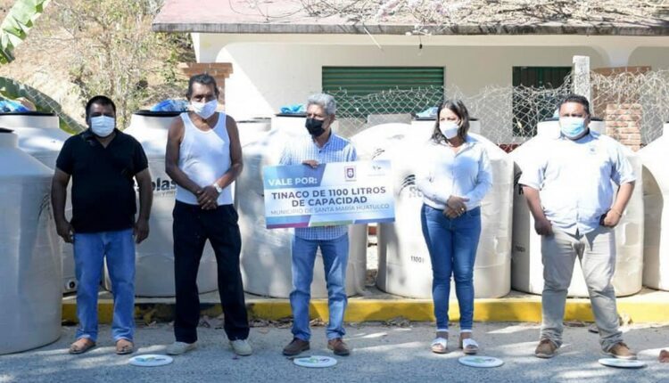 Se entregan 80 tinacos a 80 familias del municipio de Huatulco