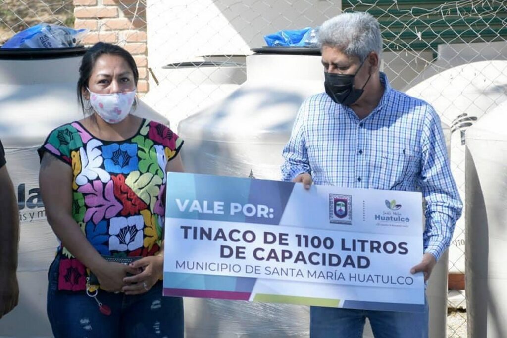 La primera entrega de 35 tinacos fue hecha en el fraccionamiento El Zapote y la segunda se llevó a cabo en las instalaciones del DIF de Santa Cruz Huatulco, para 45 familias de esta importante agencia municipal.
