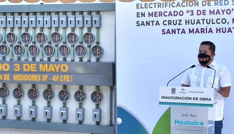 El Gobierno de Huatulco inauguró la red de electrificación subterránea del Mercado 3 de Mayo, ubicado en la agencia de Santa Cruz Huatulco, donde se instalaron 122 medidores que benefician directamente a comerciantes quienes por más de tres años estuvieron en la espera de este servicio básico, para brindar una oportuna atención a visitantes del destino turístico.