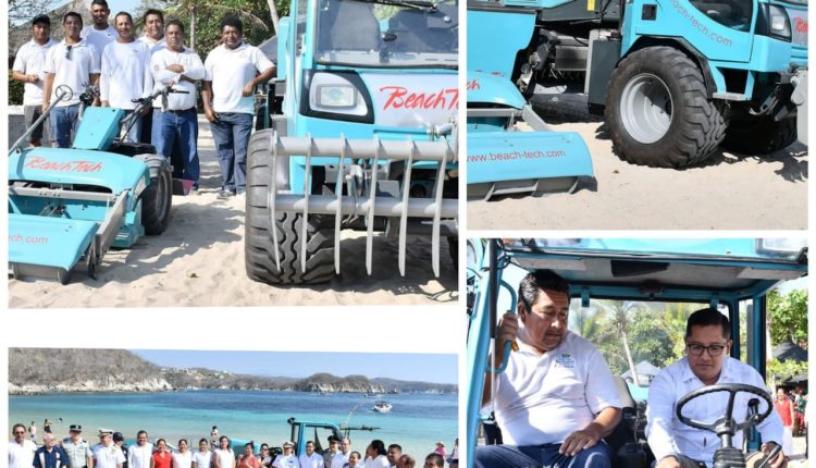 «Mediante impuestos que pagan los usuarios de la Zona Federal Marítimo Terrestre (Zofemat) en nuestro municipio se rehabilitó la barredora de playas, que hoy entregamos en la playa La Entrega al personal municipal, que realiza la labor de limpieza de las playas de nuestro centro turístico.