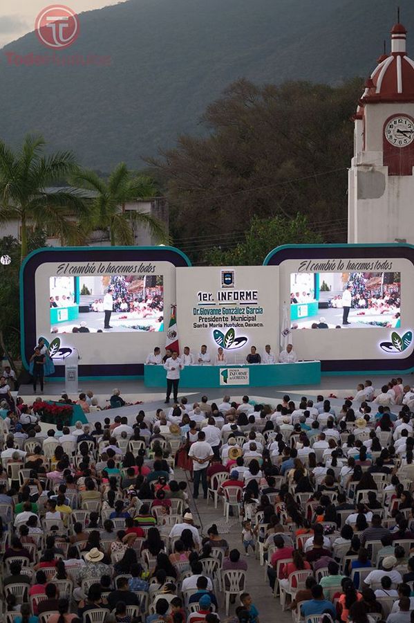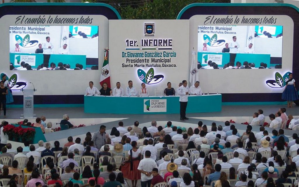 La tarde de ayer, el presidente municipal de Santa María Huatulco, Giovanne González García rindió el primer informe de gobierno en la explanada de la cabecera municipal.
