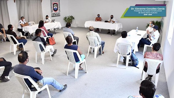En forma conjunta con el cabildo, agentes y representantes municipales de #Huatulco, la síndico del vecino hermano municipio de San Pedro Pochutla, Sonia Silva Muñoz , hoy en reunión de trabajo en la Sala Expresidentes acordamos fortalecer los filtros sanitarios, realizar la desinfección del transporte pesado y vehículos particulares que vengan de otros estados, mantener la medida de limitar el número de pasajeros en unidades del transporte público e implementar puntos de llegada y control en la agencia de Santa Cruz Huatulco y Santa María Huatulco.