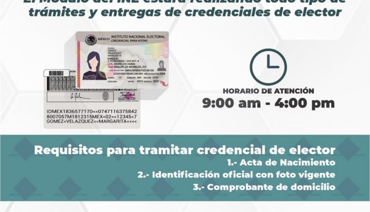 El Módulo del INE estará realizando todo tipo de trámites y entregas de credenciales de elector del 15 de enero al 21 de enero del 2021 en las instalaciones del Palacio Municipal de Santa María Huatulco