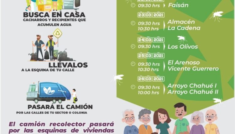 Infórmate de las fechas del recorrido y tira botellas, llantas, latas o trastes que ya no utilizas y en los que se pueda acumular agua.