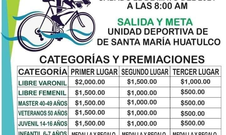 La unidad deportiva de Santa María Huatulco recibirá a los mejores ciclistas de nuestro municipio este sábado 22 de Mayo del 2021 en punto de las 8:00 a.m.