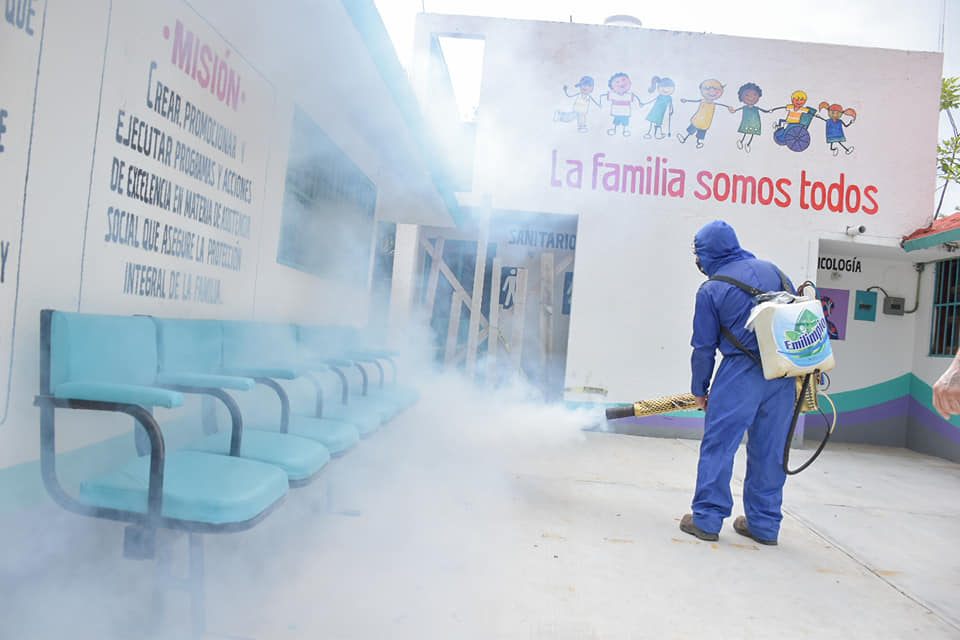 El Gobierno Municipal agradece la loable labor de la empresa Emilimpio Huatulco quien el día de hoy realizó sanitización en el Palacio Municipal, espacios públicos y en diferentes áreas en la cabecera municipal como son: Parque Central, el Registro Civil, Injhux, Deportes, Bienes Patrimoniales, Recursos Humanos, Obras Públicas, Inmujer, Vialidad, Contraloría, el Sistema DIF Municipal, Archivo Municipal, Casa de la Cultura, Ecología y Educación.
