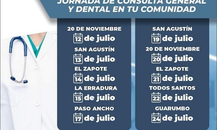 Se invita a la población en general a la Jornada de Consulta General y Dental en tu Comunidad, que inicia este 12 julio del 2021.