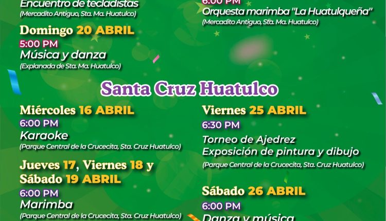 Recuerden que el Festival de Cultura Semana Santa continúa con diversas actividades tanto en la cabecera municipal así como en Santa Cruz Huatulco.
