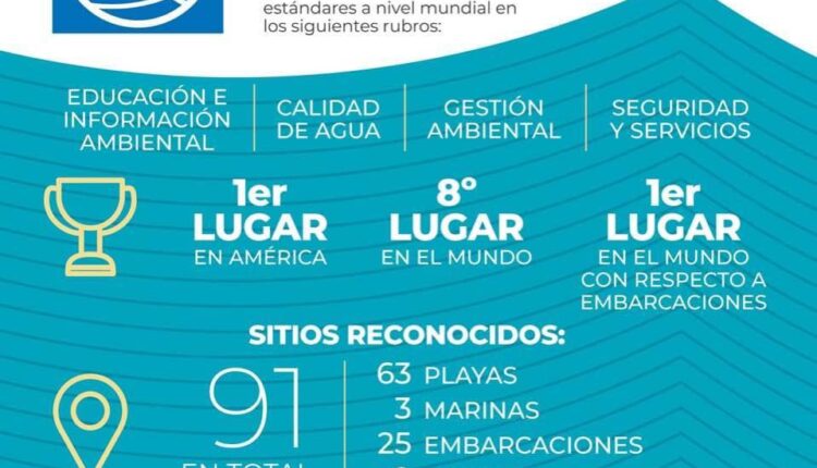 63 playas con el distintivo Blue Flag (Blue Flag México) en nueve estados.