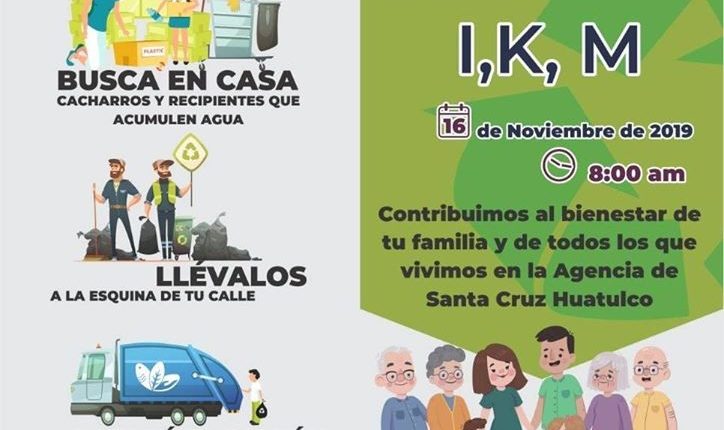 Participa en la Jornada de Limpieza y Eliminación de Criaderos este 16 de noviembre a las 8:00 am, el gobierno municipal invita a la población en general.