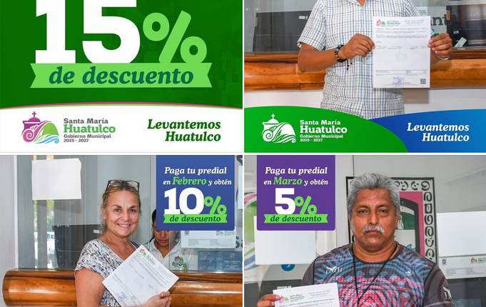 ¡Paga tu predial en enero y aprovecha los descuentos que ofrece el Gobierno de Huatulco!