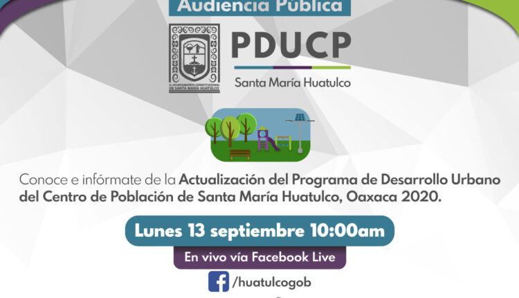 El gobierno de Huatulco invita a la ciudadanía en general a seguir la transmisión en vivo en esta página oficial de facebook, este lunes 13 de septiembre a las 10 am, para analizar el Plan Municipal de Desarrollo Urbano.