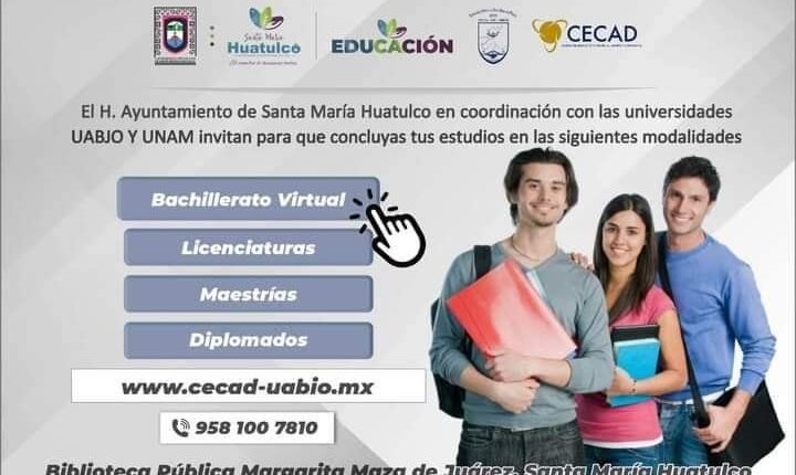 MunicipioNoticias de Huatulco Bachillerato Virtual en el CECAD UABJO Santa María Huatulco By Yvan Luna On Nov 12, 2021 20 Share Consulta el procedimiento de ingreso y los requisitos para cursar tu Bachillerato de manera Virtual en el CECAD UABJO con sede en Santa María Huatulco 👇 Bachillerato VirtualCECAD UABJOHuatulcoNoticias de la costa de OaxacaNoticias en HuatulcoPrepárate y concluye tus estudios 20 Share FacebookWhatsAppTwitterGoogle+PinterestEmail