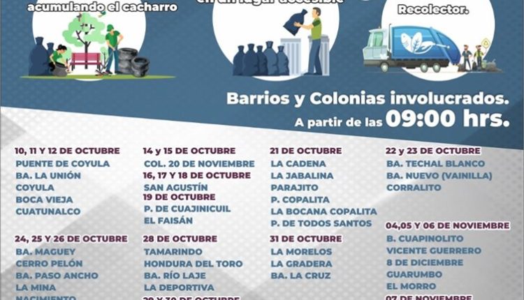 Noticias de Huatulco Brigada de descarcharrización en Huatulco By Yvan Luna On Oct 10, 2019 0 196 Share Lava, Tapa, Voltea y Tira. Participa en la campaña de Eliminación de Criaderos, con el objetivo de prevenir enfermedades transmitidas por vectores. ¡Mantente al tanto de tu Barrio o Colonia, la participación es de todos!. Giovanni GonzalezGobierno Municipal HuatulcoHuatulcoNoticias en Huatulco 0 196 Share FacebookWhatsAppTwitterGoogle+PinterestEmail
