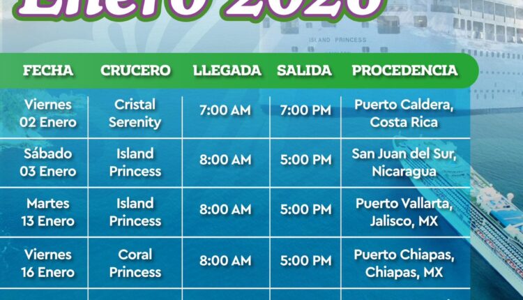 La temporada de cruceros 2025-2026 continúa con gran actividad en Huatulco. Durante el mes de enero de 2026, el muelle de Santa Cruz recibirá importantes embarcaciones, destacando el arribo de visitantes internacionales que fortalecen la economía local.