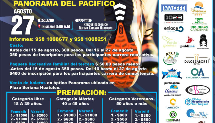 📅 La Carrera será este 27 de agosto a las 8:00am en el 📍 Parque Rufino Tamayo, Huatulco