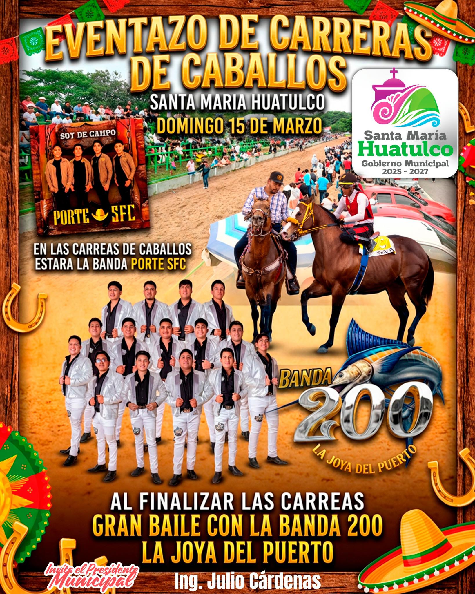 Al finalizar las carreras, la fiesta continúa con un baile popular amenizado por la Banda 200 “La Joya del Puerto” y la participación musical de Porte SFC, en una jornada llena de música, emoción y convivencia.