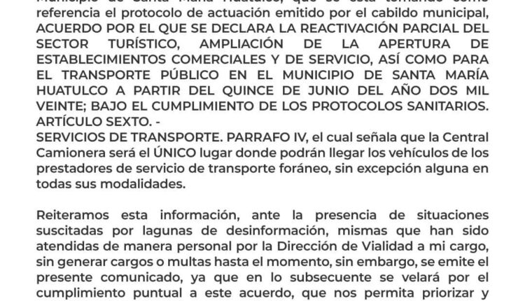 Municipio Comunicado de la dirección de Vialidad Municipal Huatulco By Yvan Luna On Sep 24, 2020 101 Share Comunicado de la dirección de Vialidad Municipal Huatulco Comunicado de la dirección de Vialidad Municipal HuatulcoComunicado Gobierno de HuatulcoGiovanne GonzalesGobierno Municipal HuatulcoHuatulcoNoticias de la costa de OaxacaNoticias en Huatulco 101 Share FacebookWhatsAppTwitterGoogle+PinterestEmail