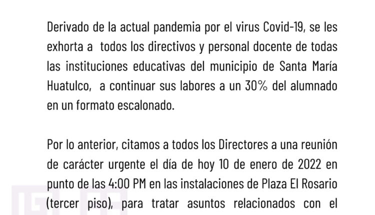 Municipio Comunicado del Gobierno de Huatulco sobre el regreso a clases By Yvan Luna On Ene 10, 2022 35 Share 📌COMUNICADO OFICIAL.10 de enero de 2022.En el marco de la estrategia para el regreso a clases seguro y gradual, el gobierno municipal informa: Comunicado del Gobierno de Huatulco sobre el regreso a clases Comunicado Gobierno de HuatulcoComunicado oficial HuatulcoComunicados oficiales de HuatulcoGobierno Municipal HuatulcoHuatulcoNoticias en HuatulcoPepe Hernandez Gobierno Municipal de HuatulcoRegreso a clases en Huatulco 35 Share FacebookWhatsAppTwitterGoogle+PinterestEmail
