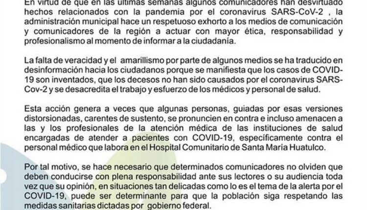 Municipio Comunicado Oficial del Gobierno Municipal de Santa María Huatulco. By Yvan Luna On May 18, 2020 209 Share Comunicado Oficial del Gobierno Municipal de Santa María Huatulco. Giovanni GonzalezGobierno Municipal HuatulcoNoticias de la costa de OaxacaNoticias en Huatulco 209 Share FacebookWhatsAppTwitterGoogle+PinterestEmail