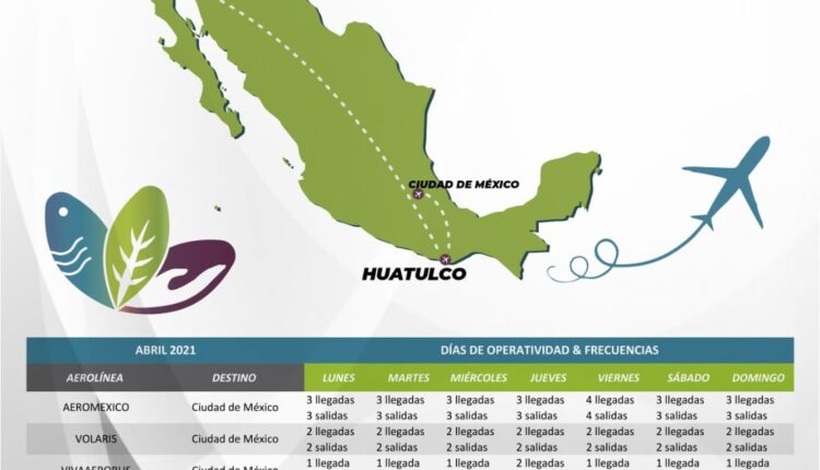 El Gobierno Municipal de Santa María Huatulco como parte de la reactivación económica en esta Nueva Normalidad te comparte la conectividad de vuelos con los que cuenta el aeropuerto internacional de Huatulco durante el mes de Abril.