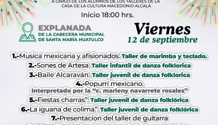 EventosMunicipio Cultura y Deporte en las Fiestas Patrias 2025 By Yvan Luna On Sep 12, 2025 4 Share Cultura y Deporte en las Fiestas Patrias 2025 Viernes 12 de septiembre de 202518:00 hrs 4 Share FacebookWhatsAppTwitterGoogle+PinterestEmail