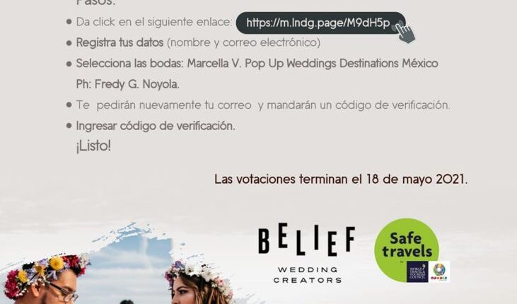 Belief Wedding Creators es una comunidad internacional encargada de promover y profesionalizar a los proveedores de la industria de romance en 36 ciudades alrededor del mundo. Cada año, organizan el Belief Wedding Awards un concurso en línea creado para celebrar a los Wedding Planners de todo el mundo, la finalidad es difundir el talento que existe en cada país y honrar a los profesionales por su conocimiento experiencia. Este año nuestro estado Oaxaca fue seleccionado en las categorías “Destination Wedding” y “Cultural Wedding” representando elementos maravillosos de nuestra cultura así como los maravillosos destinos de Huatulco y Mazunte.Los invitamos a votar por estas 2 mini bodas para que sean ganadoras de este importante reconocimiento.La forma de votar es la siguiente: