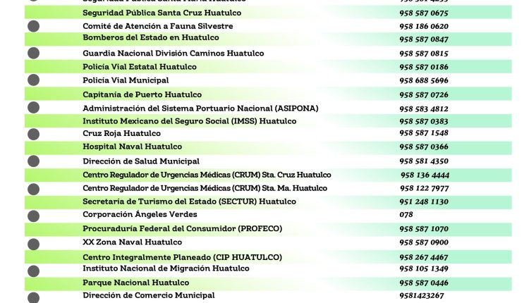 Directorio de Servicios de Emergencias Huatulco: tu seguridad es prioridad