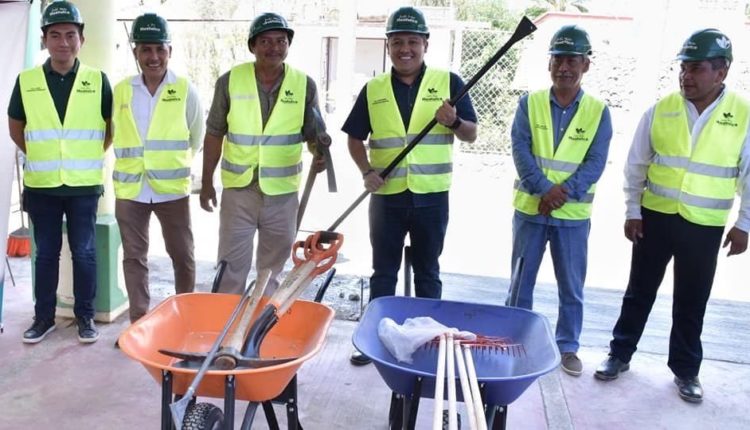 En esta visita, acompañado de regidores y directores, hicieron entrega de material de construcción a la Escuela Primaria “20 de Noviembre” y herramientas a los representantes de San José Pueblo Viejo y Arroyo Limón.