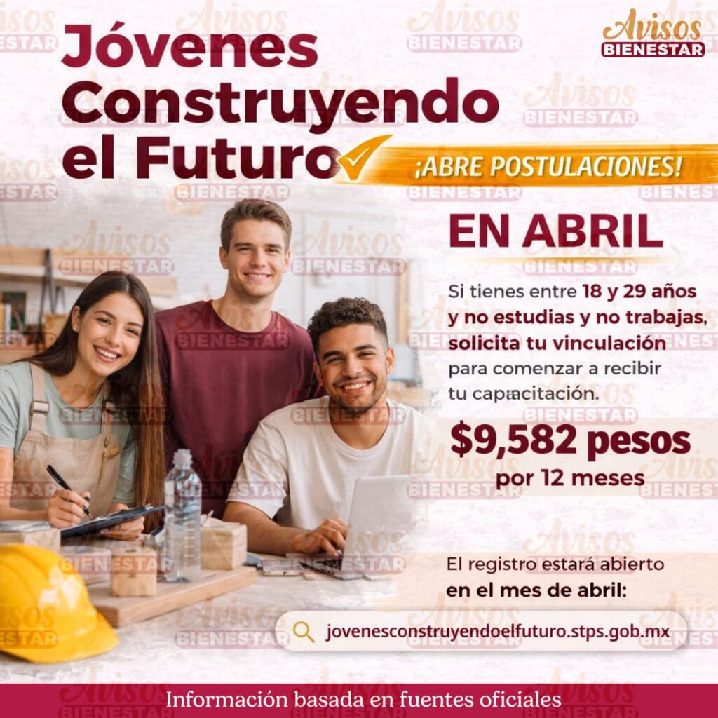 Si tienes entre 18 y 29 años, puedes vincularte para recibir capacitación laboral y un apoyo mensual de $9,582 pesos por hasta 12 meses.