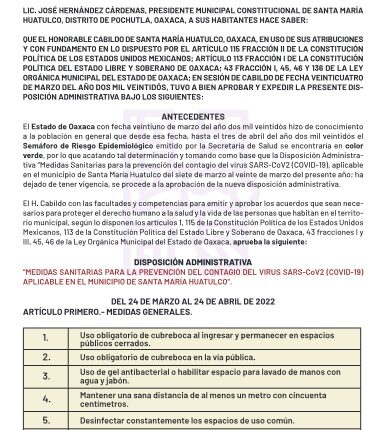 Se pone al alcance del público la gaceta oficial, con las nuevas disposiciones administrativas, aprobadas en sesión de cabildo, del 24 de marzo al 24 de abril 2022; entre las medidas se destacan:
