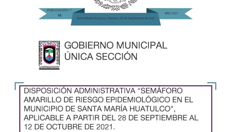 Huatulco pasa a semáforo amarillo, Gaceta municipal