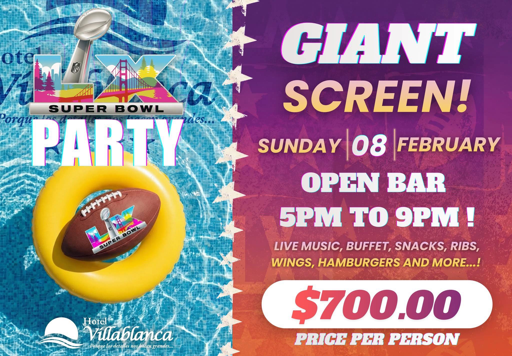 Villablanca Huatulco prepara un evento único con la transmisión del Super Bowl 2026, en una tarde que contará con pantallas gigantes, menú especial de partido y acceso por $700 pesos por persona.