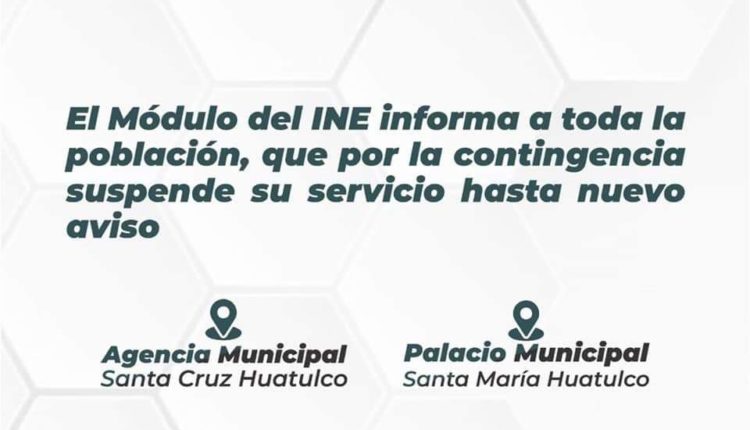 EventosNoticias de Huatulco INE en Huatulco By Yvan Luna On Mar 25, 2020 349 Share INE El gobierno municipal de Santa María #Huatulco informa a toda la población en general que los servicios del INE se suspendieron debido a la contingencia de Salud, hasta nuevo aviso. Noticias en Huatulco 349 Share FacebookWhatsAppTwitterGoogle+PinterestEmail