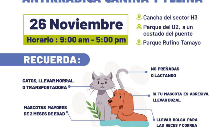Participa en la jornada de vacunación antirrábica canina y felina. ¡Es gratuita!