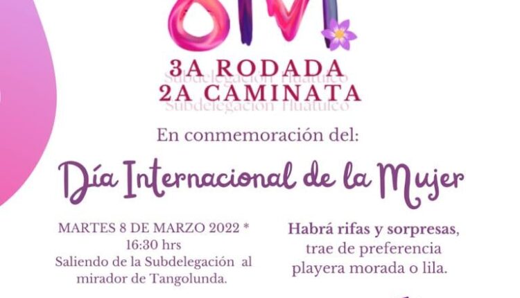 La Subdelegación del IMSS Santa María Huatulco invita a la 3a rodada y 2a caminata en conmemoración al Día Internacional de La Mujer .