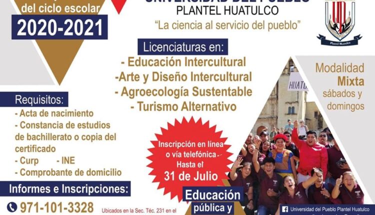 La Universidad del Pueblo plantel Huatulco abre sus inscripciones para el ciclo escolar 2020-2021.