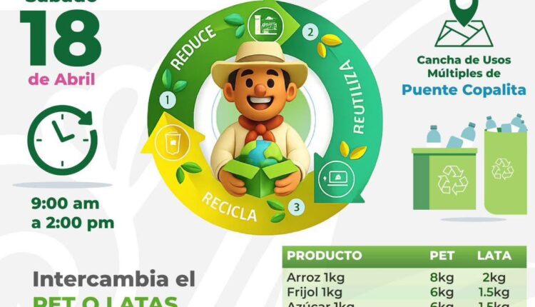 Durante esta jornada, las y los asistentes podrán intercambiar botellas de PET o latas de aluminio por productos de la canasta básica, promoviendo la cultura de reducir, reutilizar y reciclar.