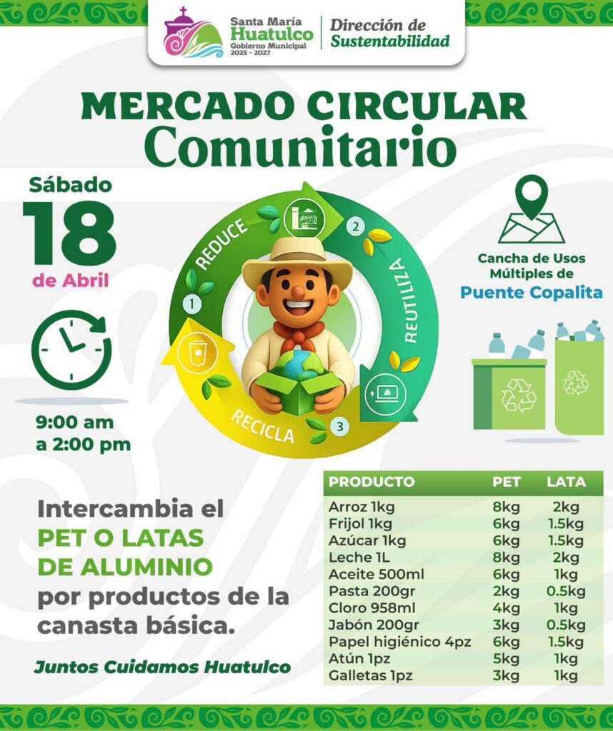 Este sábado 18 de abril se llevará a cabo el Mercado Circular Comunitario en la Cancha de Usos Múltiples de Puente Copalita.