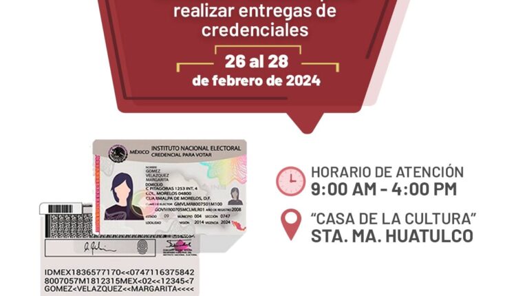 Municipio Módulo del INE en la cabecera Municipal de Santa María Huatulco By Yvan Luna On Feb 26, 2024 14 Share Si solicitaste tu credencial de elector, ya está instalado el módulo del INE en la cabecera municipal. Pasa a recoger tu identificación oficial. Gobierno de HuatulcoGobierno MunicipalGobierno Municipal HuatulcoHuatulcoNoticias de la costa de OaxacaNoticias en Huatulco 14 Share FacebookWhatsAppTwitterGoogle+PinterestEmail