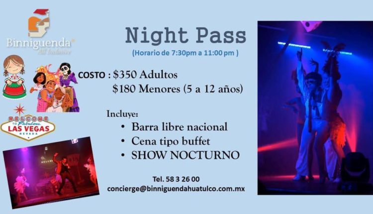 Promociones Night Pass en el Hotel Binniguenda Huatulco By Yvan Luna On Oct 7, 2019 0 284 Share ¡Ven y disfruta de la experiencia Binniguenda! Pregunta por sus paquetes Day Pass & Night Pass Horario de 7:30 pm a 11:00 pm Costo: $350 adultos Tel: 583 26 00 Actividades en HuatulcoHoteles en HuatulcoHuatulcoNoticias en HuatulcoQue hacer en Huatulco 0 284 Share FacebookWhatsAppTwitterGoogle+PinterestEmail
