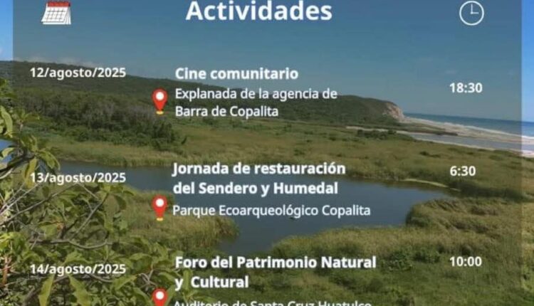 El programa incluye cine comunitario, jornada de restauración, foro del patrimonio natural y cultural, y un evento sociocultural abierto al público.