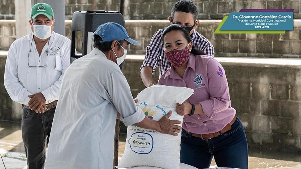 Presidente Municipal de Huatulco entrega 124 sacos de maíz a productores agrícolas