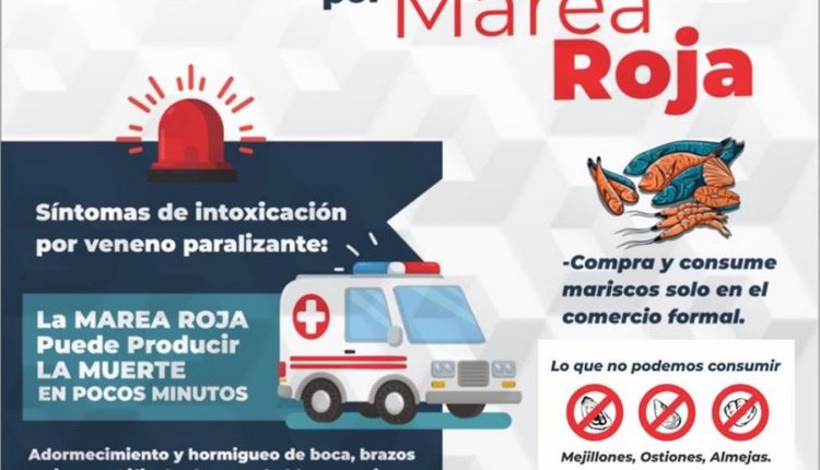 El gobierno municipal informa que queda prohibida temporalmente, la captura, comercialización y consumo de moluscos bivalvos, como almejas, mejillones, ostiones, entre otras especies, a causa de la presencia de marea roja en el litoral de nuestro municipio.