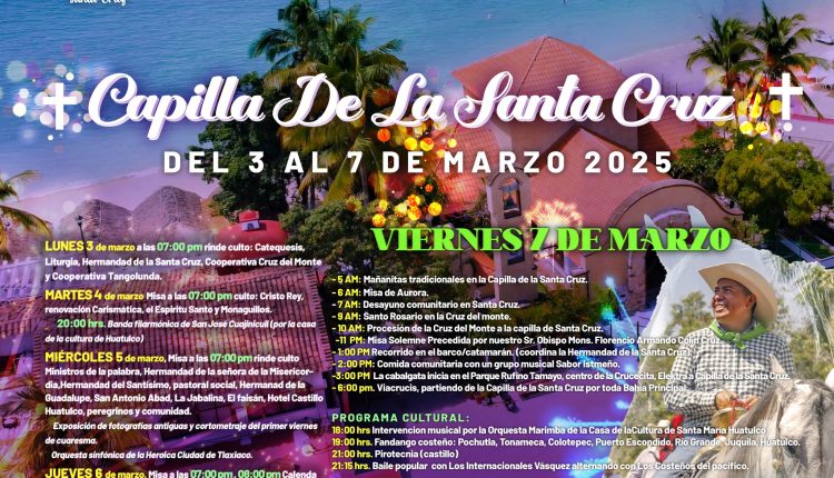 El Gobierno Municipal de Santa María Huatulco y la Hermandad de la Santa Cruz invitan a la población a ser parte de esta tradición de fe y cultura en la Capilla de la Santa Cruz, del lunes 03 al viernes 07 de marzo.
