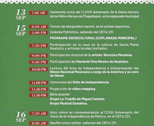 Programa de actividades de las Fiestas Patrias Huatulco 2023