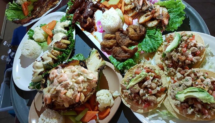 Colorido restaurante con palapa en donde se ofrece variado menú de pescados y mariscos acompañados de tragos.
