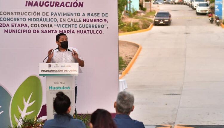 Junto a integrantes del cabildo, el representante, José García Fabián y pobladores de la colonia Vicente Guerrero de la cabecera municipal, inaugura el Gobierno de Huatulco la segunda etapa de pavimentación a base de concreto hidráulico de la calle número 9, una vía principal de tránsito que fue solicitada por muchos años por los había y hoy es una realidad para Huatulco.