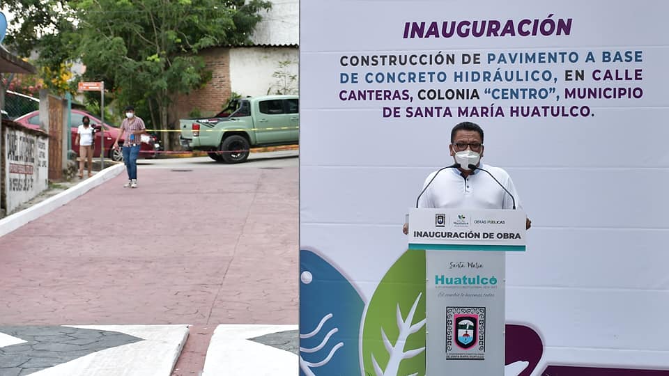 «Estamos mejorando la infraestructura pública de nuestra cabecera municipal, con obras como la pavimentación a base de concreto hidráulico de la calle Canteras, un acceso principal e importante, ya que además de conducir al atractivo natural que es el Río de Huatulco, también es punto de salida para la comunidad de Benito Juárez, perteneciente al municipio de San Pedro Pochutla.