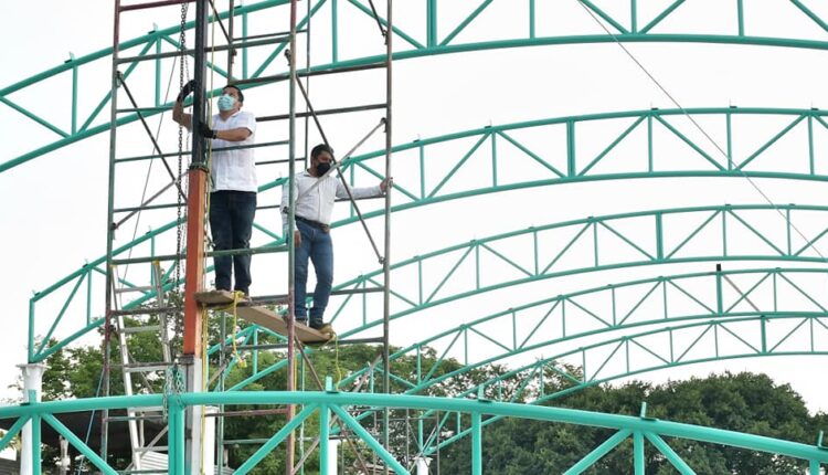 Se supervisa la construcción del techado de la cancha de usos múltiples de Barrio Guarumbo, Huatulco